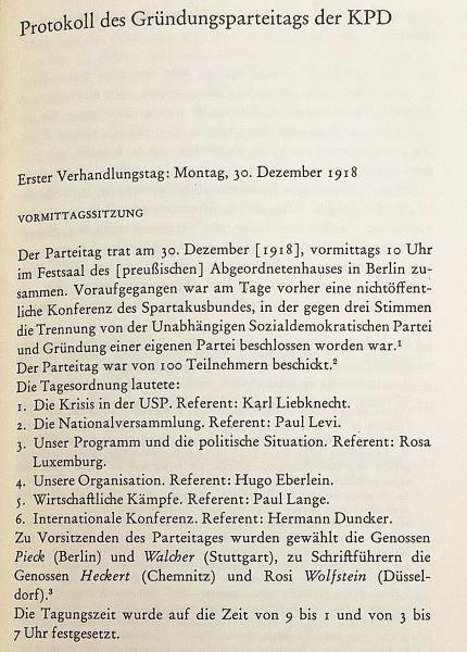 ドイツ共産党 (KPD) 創立党大会の一次資料をまとめた、1969年刊の重要史料集。