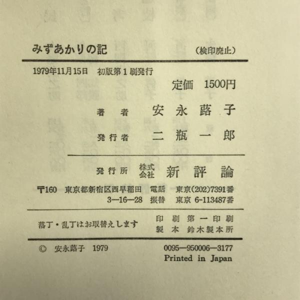 みずあかりの記 (1979年) 新評論 安永 蕗子