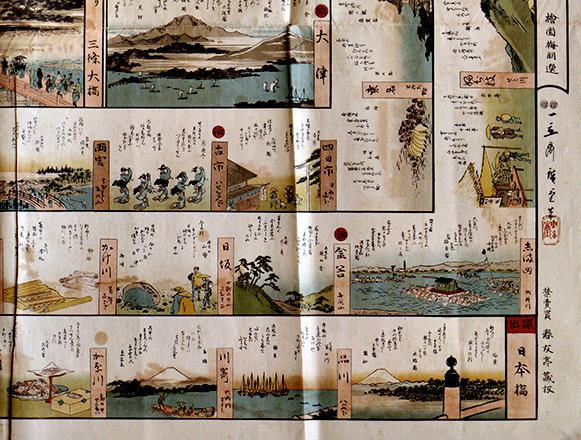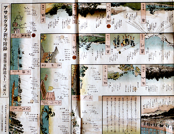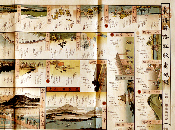嘉永頃刊複刻双六 東海驛路狂歌壽娯録 広重筆/檜園梅明選 禁売買 春友亭蔵板