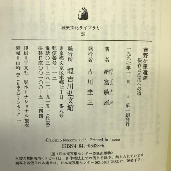 吉野ケ里遺跡―保存と活用への道 (歴史文化ライブラリー) 吉川弘文館 納富 敏雄