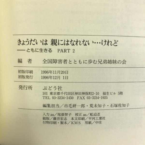 きょうだいは親にはなれない…けれど―ともに生きるpart 2 ぶどう社 全国障害者とともに歩む兄弟姉妹の会東京都