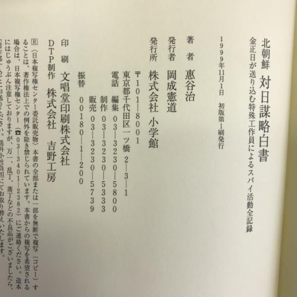 北朝鮮 対日謀略白書―金正日が送り込む特殊工作員によるスパイ活動全記録 小学館 恵谷 治
