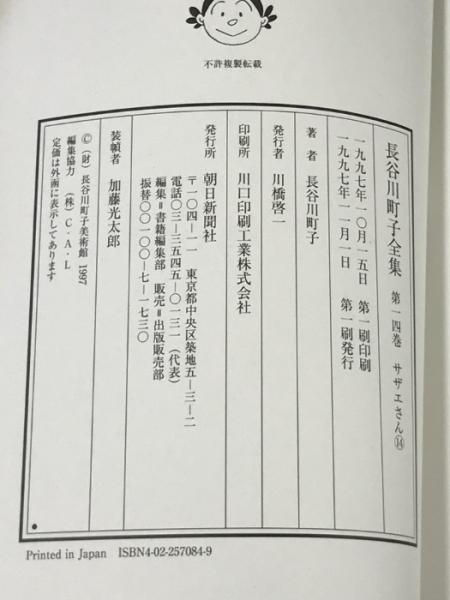 長谷川町子全集 (14) サザエさん 14 朝日新聞出版 長谷川 町子