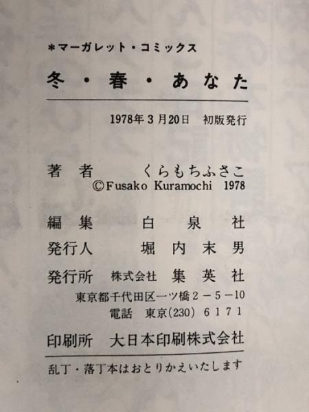 冬・春・あなた (マーガレットコミックス) 集英社 くらもち ふさこ