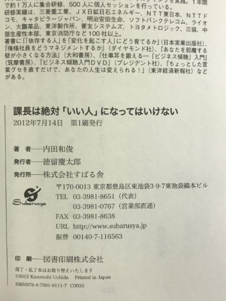 課長は絶対「いい人」になってはいけない! すばる舎 内田和俊