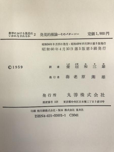 数学における発見はいかになされるか 2 発見的推論 丸善 ポリア