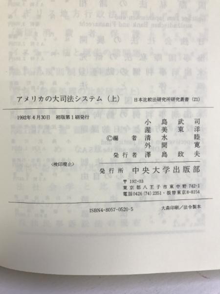 アメリカの大司法システム〈上〉 (日本比較法研究所研究叢書―国際共同研究「裁判所の役割」) 中央大学出版部 小島武司