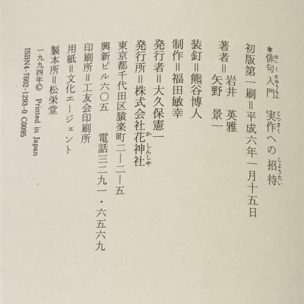 俳句入門実作への招待 花神社 岩井 英雅
