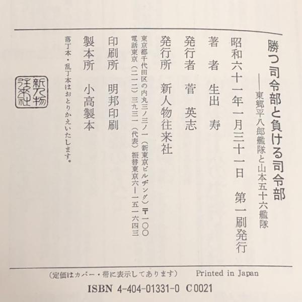 勝つ司令部と負ける司令部―東郷平八郎艦隊と山本五十六艦隊 新人物往来社 生出 寿