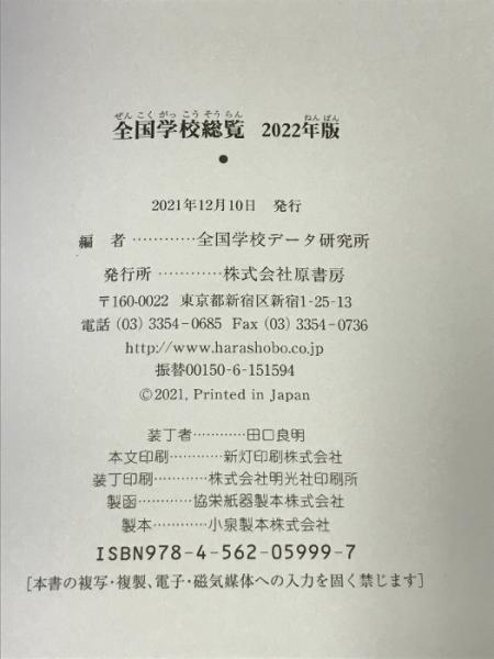 全国学校総覧 2022年版 原書房 全国学校データ研究所