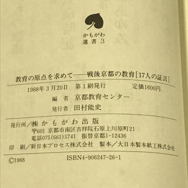 教育の原点を求めて―戦後京都の教育「17人の証言」 (かもがわ選書 3) かもがわ出版 京都教育センター