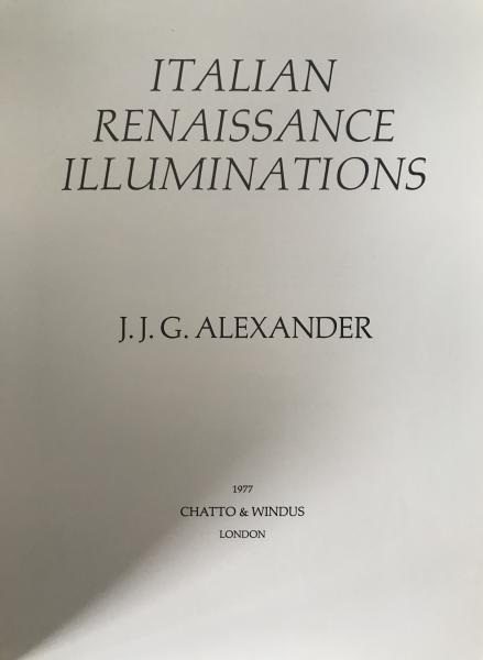 J. J. G. Alexander: Italian Renaissance Illuminations 1977 UK First Edition Art History