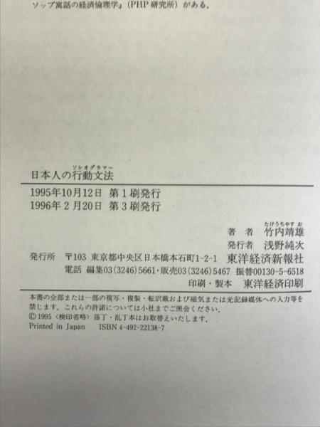 日本人の行動文法(ソシオグラマー)―「日本らしさ」の解体新書 東洋経済新報社 竹内 靖雄