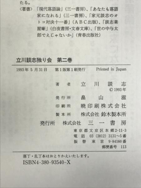 立川談志独り会 第2巻 三一書房 立川 談志