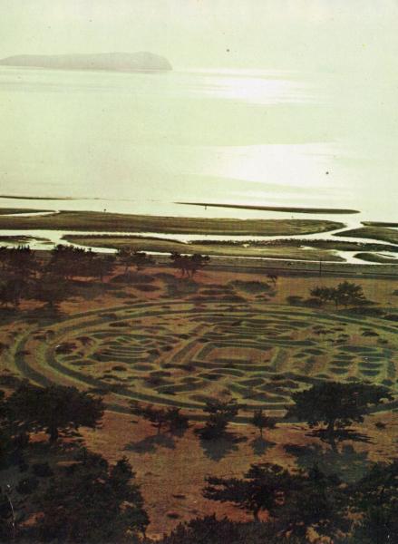 • 解説 N25120611〇戦前絵葉書 ○さぬき絵葉書 香川 琴弾(ことひき)公園 砂絵「寛永通宝」 觀音寺市 古写真 カラー○和本古書古文書
