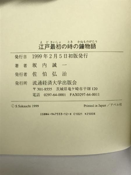 江戸最初の時の鐘物語 流通経済大学出版会 坂内 誠一