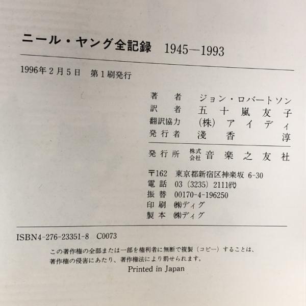 ニール・ヤング 全記録 1945~1993 音楽之友社 ジョン ロバートソン