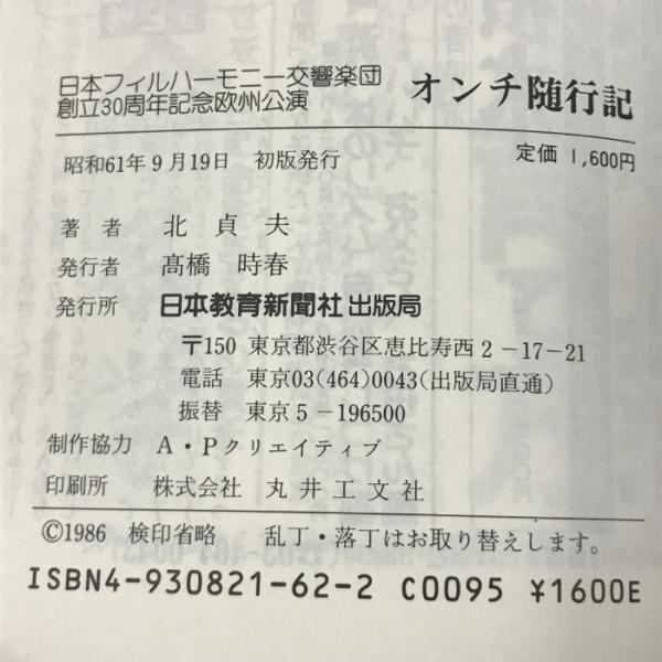 日本フィルハーモニー交響楽団創立30周年記念欧州公演 オンチ随行記 日本教育新聞社 北 卓夫