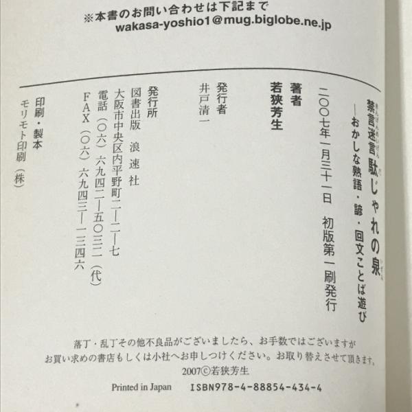 禁言迷言 駄じゃれの泉 おかしな熟語・諺・回文ことば遊び 浪速社 若狭 芳生