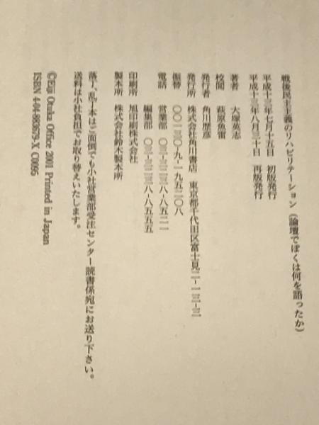 戦後民主主義のリハビリテーション―論壇でぼくは何を語ったか (文芸シリーズ) 角川書店 大塚 英志