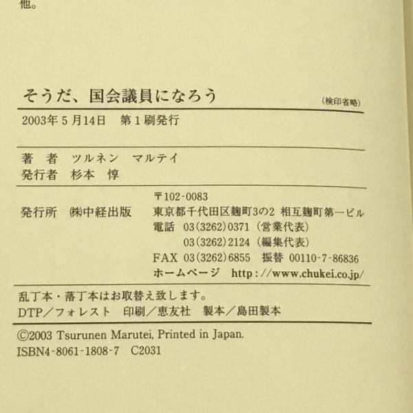 そうだ、国会議員になろう 中経出版 ツルネン・マルテイ