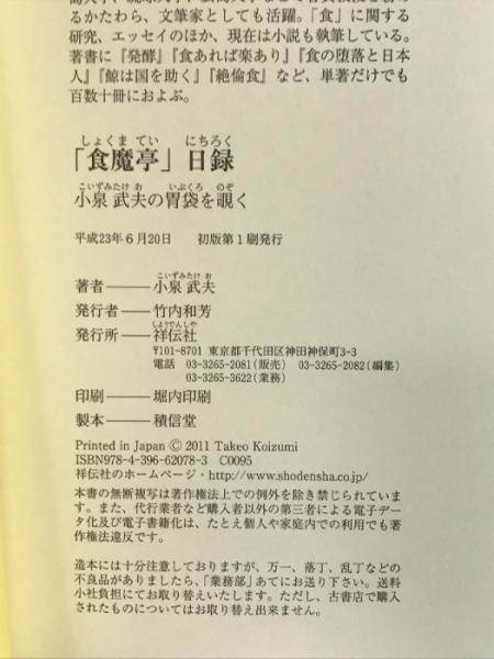 「食魔亭」日録 小泉武夫の胃袋を覗く 祥伝社 小泉武夫