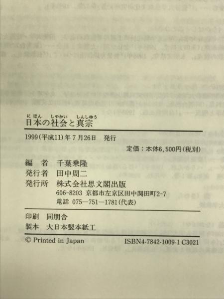 日本の社会と真宗 思文閣出版 千葉乗隆