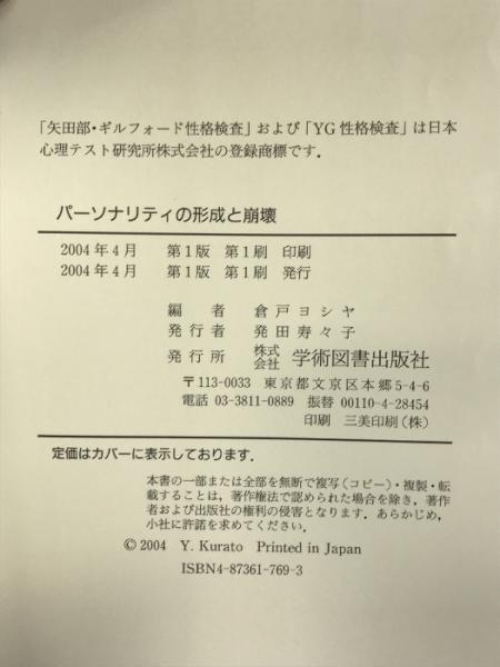 パーソナリティの形成と崩壊 学術図書出版社 倉戸ヨシヤ