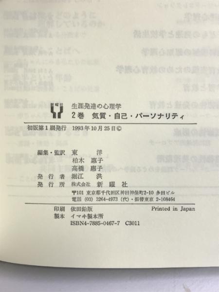 気質・自己・パーソナリティ (生涯発達の心理学) 新曜社 東洋