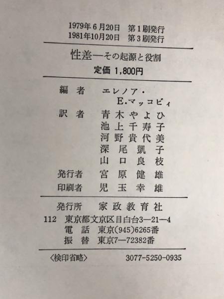 性差―その起源と役割 (1979年) 家政教育社 青木 やよひ