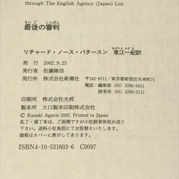最後の審判 新潮社 リチャード・ノース パタースン