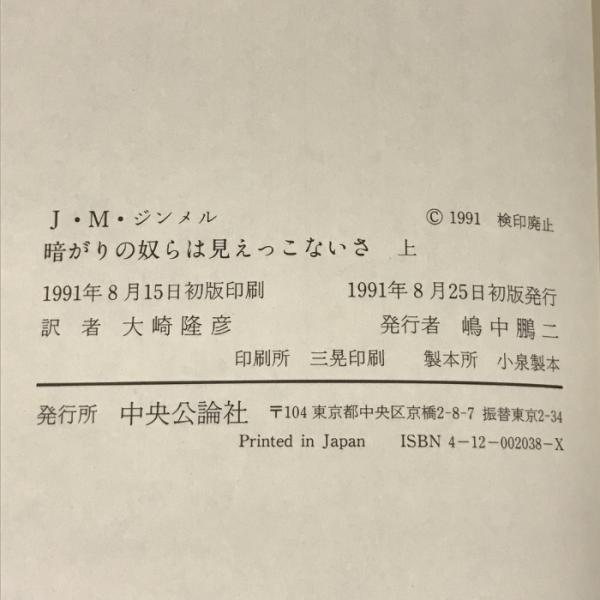暗がりの奴らは見えっこないさ〈上〉 中央公論社 ヨハネス・マリオ ジンメル