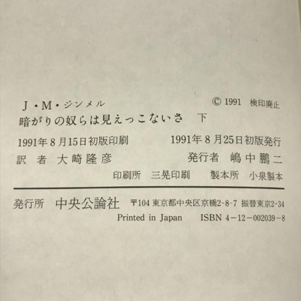 暗がりの奴らは見えっこないさ〈下〉 中央公論社 ヨハネス・マリオ ジンメル