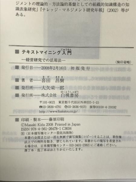 テキストマイニング入門―経営研究での活用法 (Hakuto management) 白桃書房 喜田 昌樹