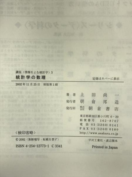統計学の数理―講座 情報をよむ統計学〈3〉 (講座情報をよむ統計学 3) 朝倉書店 上田 尚一