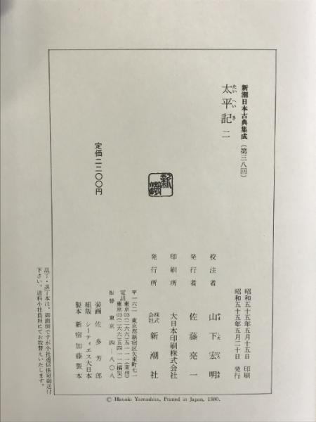 太平記(2) 新潮日本古典集成 第38回 新潮社 山下宏明