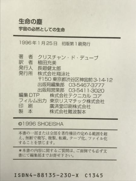 生命の塵―宇宙の必然としての生命 (翔泳選書) 翔泳社 クリスチャン・ド・デューブ