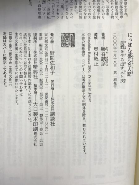 にっぽん蔵元名人記―美酒を生み出す人と技 講談社 勝谷 誠彦