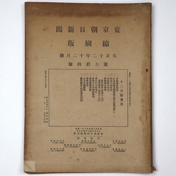東京朝日新聞縮刷版 大正12年12月号 第54号