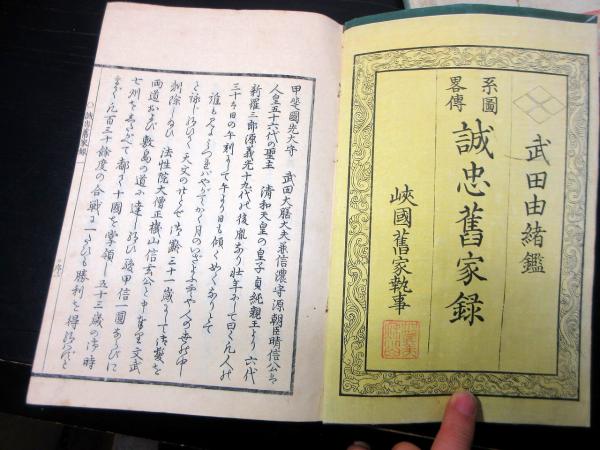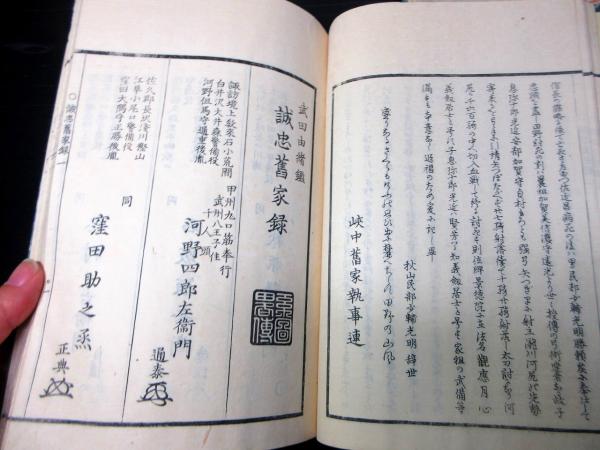 • 解説 和本江戸期「系図略伝/誠忠旧家録(武田由緒鑑)」仁1冊(袋付き)/加賀美光遠/古書古文書/木版摺りです。