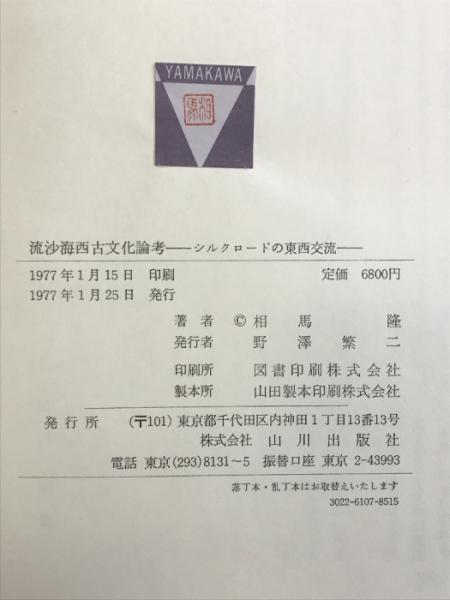 流沙海西古文化論考―シルクロードの東西交流 山川出版社 相場隆