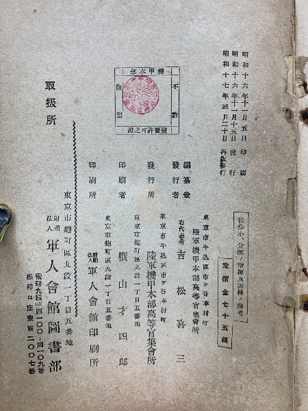 • 出版社 陸軍機甲本部高等官集会所