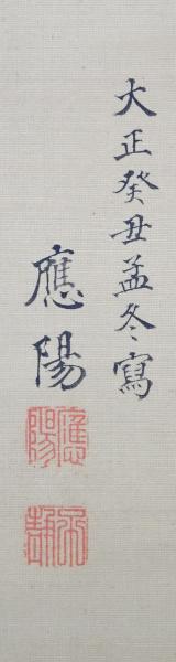 • 解説 絹本着色 本紙100×36cm 箱 (表具左端の表裏にシミ、その他表具裏に少難有) 京都生 円山派の画家国井応文の子 大正12年歿 *落款印章の画像有