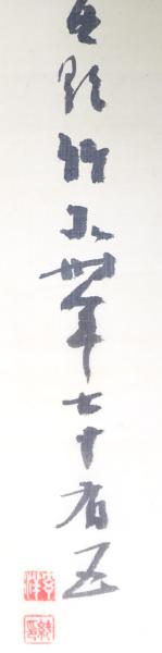 • 解説 絹本着色 共箱 2重箱 本紙130×42cm 大正9年作(箱書に有) (少シワ、極少シミ) 天保11年筑前国生 福岡藩士 幕末は国事に奔走 明治16年大阪に移り、大阪南画壇の大家として活躍した *落款印章の画像有