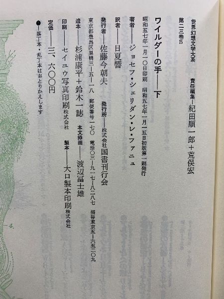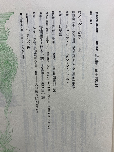 世界幻想文学大系 23 A・B ワイルダーの手 上下揃
