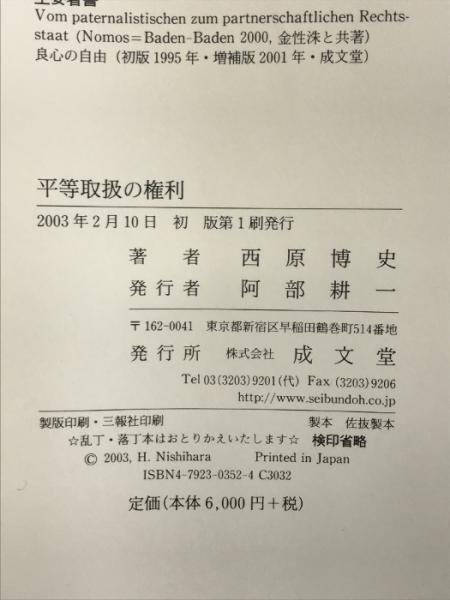 平等取扱の権利 成文堂 西原 博史