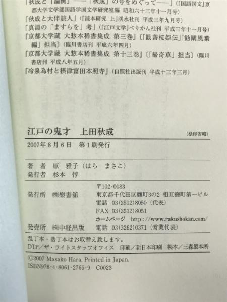 江戸の鬼才 上田秋成 (楽書ブックス) 樂書舘 原 雅子