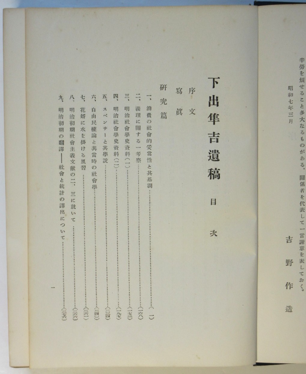 • 解説 非売品 初版 吉野作造序