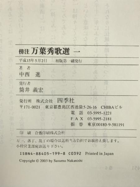 傍注 万葉秀歌選〈1〉 四季社 中西 進