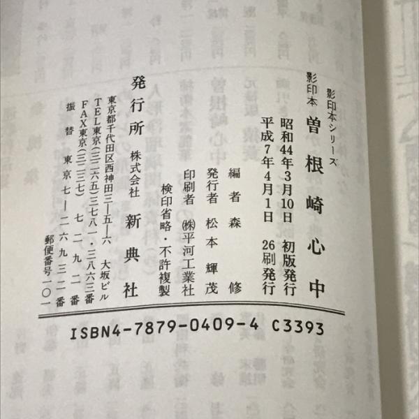 影印本 曾根崎心中―加賀掾直伝― (影印本シリーズ) 新典社 近松 門左衛門